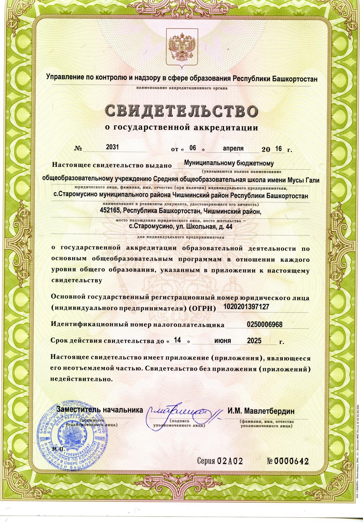 - Срок действия Основной образовательной программы основного общего образования МБОУ СОШ им. Мусы Гали с. Старомусино определяется продолжительностью освоения обучающимися основного общего образования (5 лет)